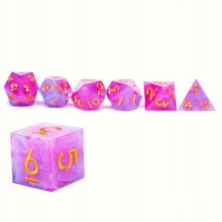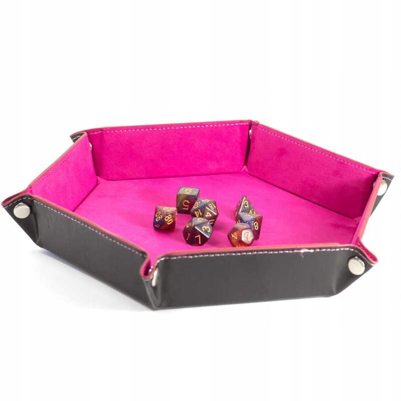 - набор из 7 костей изготовлен из эпоксидной смолы. Они идеально подходят для любой системы и для каждого игрока. Идеальный выбор, чтобы держать лодыжки в одном месте и заглушать звук их катания. Поднос в костях изготовлен из кожи и облицован бархатом внутри. Уголки содержат прочные, металлические давления благодаря, на которые мы можем превратить плоский коврик в миску для броска костей. Материал: Skaj