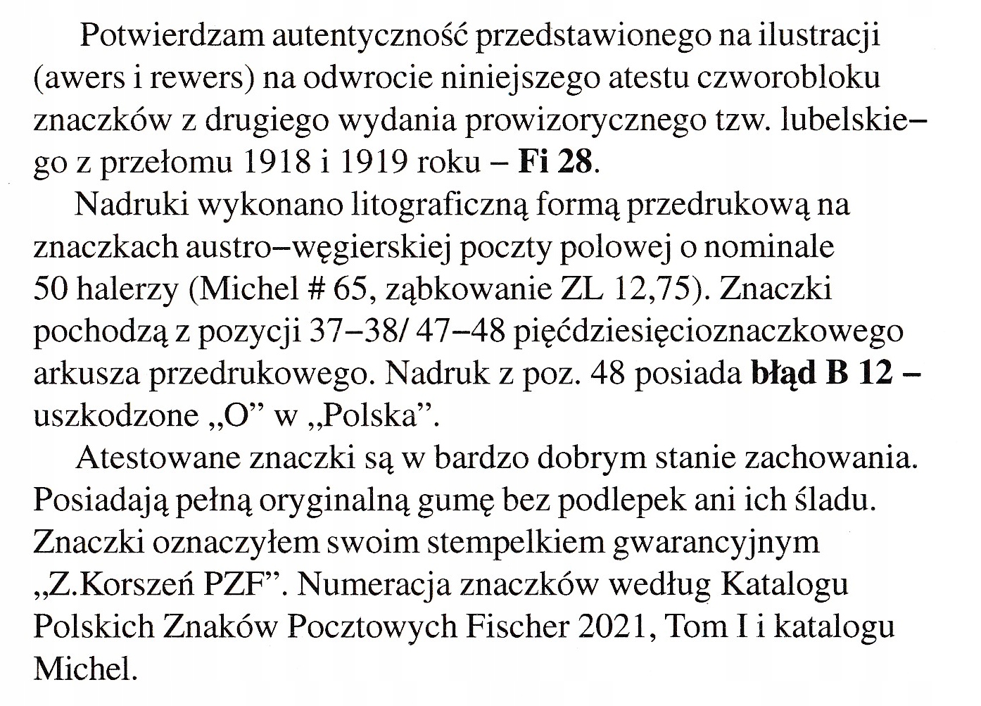 вид. Lubelskie Fi 28 ** помилка B12, сертифікат Z. Korsień