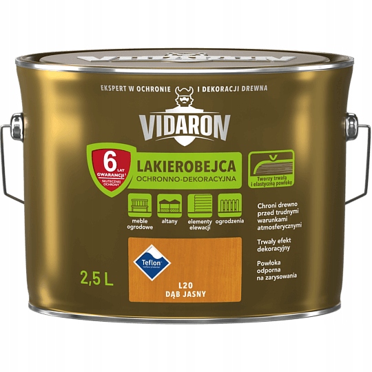 Это высококачественный продукт, изготовленный из компонентов самого высокого качества. Лаковая морилка Видарон обеспечивает максимальную защиту деревянных элементов, таких как оконные рамы, двери, садовая мебель, беседки и перголы.