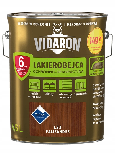 Это высококачественный продукт, изготовленный из компонентов самого высокого качества. Лаковая морилка Видарон обеспечивает максимальную защиту деревянных элементов, таких как оконные рамы, двери, садовая мебель, беседки и перголы.