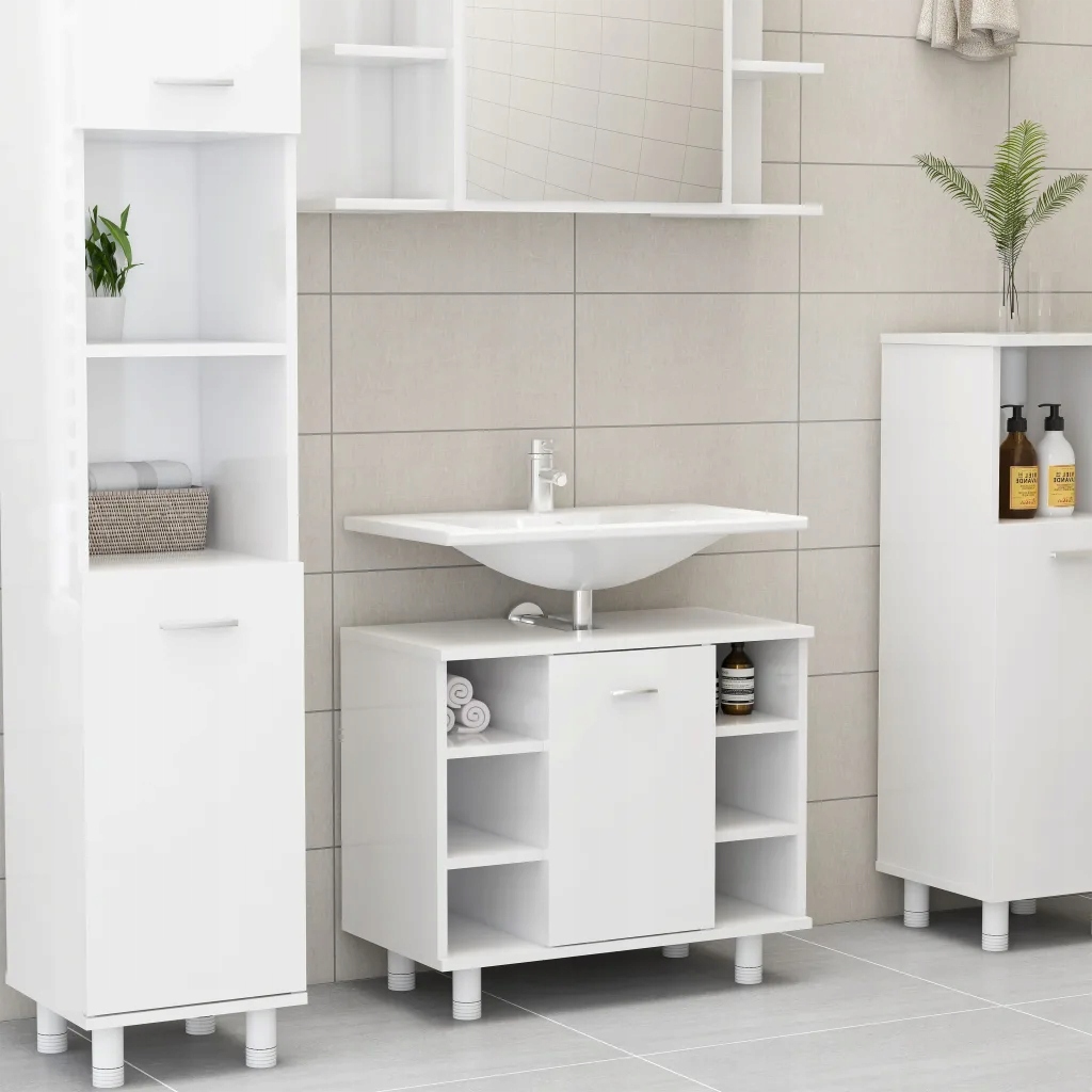 vidaXL 3 шт комплект меблів для ванної кімнати, глянець, білий, пластина, 305694