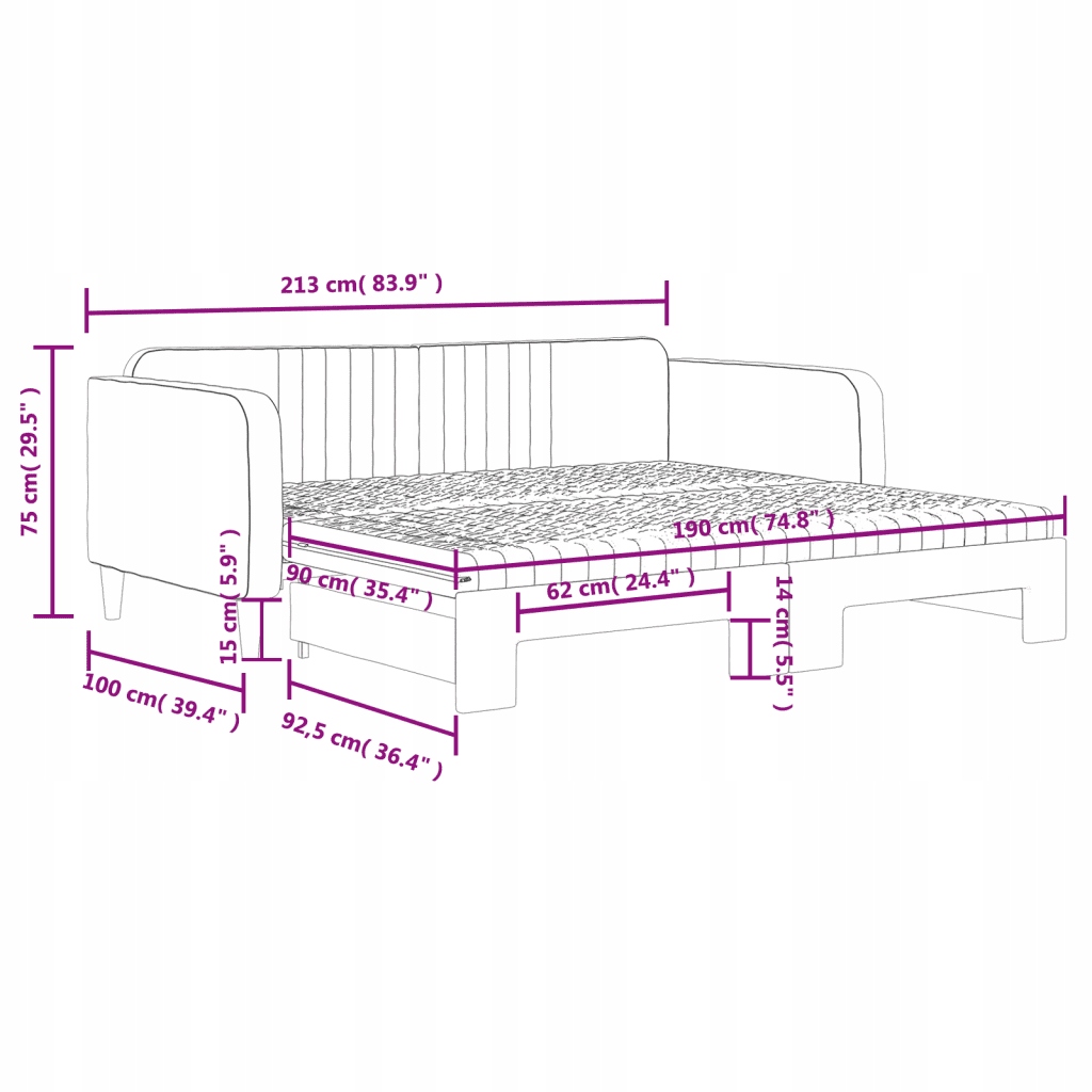 Диван раскладной с матрасами, черный, 90х190 см, бархат