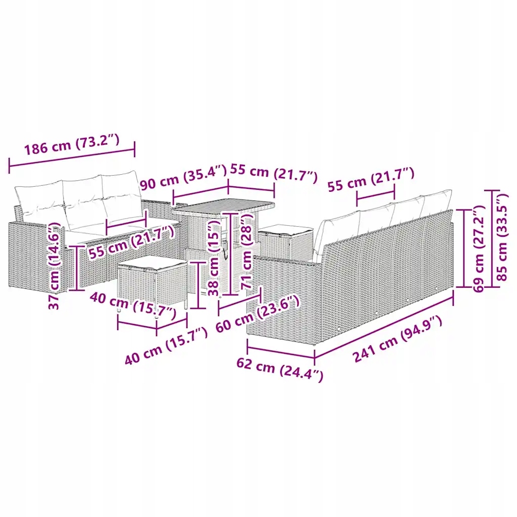 vidaXL Комплект садовых диванов, 10 шт. Бежевый полиротанг