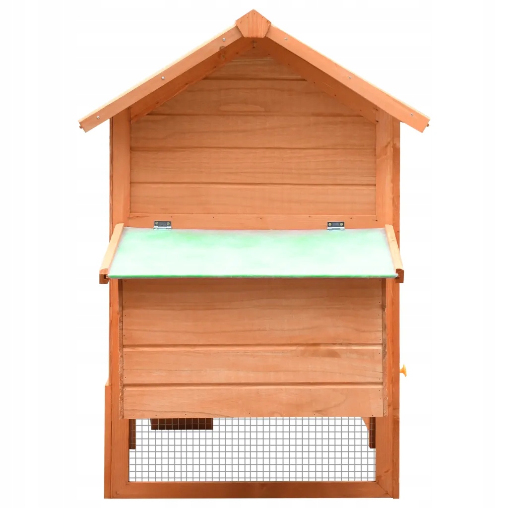 Эта качественная клетка станет уютным и комфортным местом для мелких животных, особенно кур. Конструкция из железной сетки позволяет следить за цыплятами и обеспечивает им достаточно свежего воздуха. Курятник построен с использованием высококачественного деревянного каркаса, который выдержит долгие годы эксплуатации. Зеленая крыша защищает от дождя, а уютный интерьер обеспечивает идеальное место для сна. Удобная рампа доставит вас с уровня земли на верхний уровень. Съемный поддон облегчает очистку. Дверца легко закрывается и запирается на защелку. Эту деревянную клетку для кур легко собрать.