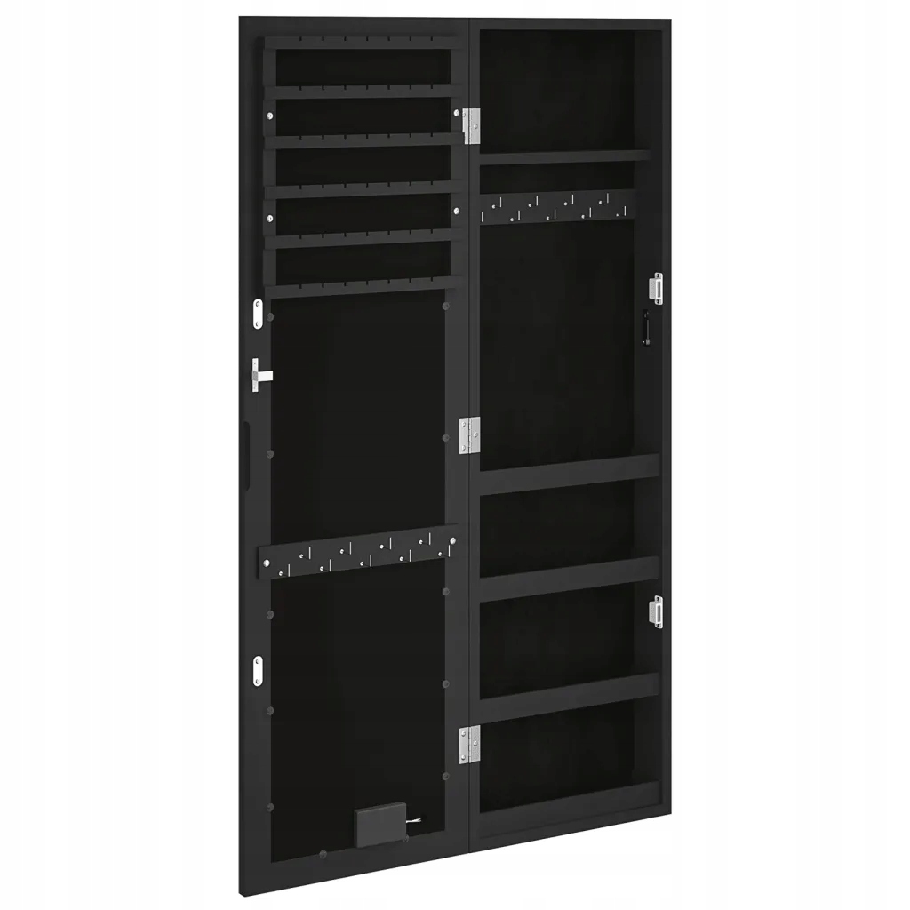 vidaXL Настенный шкаф для драгоценностей с зеркалом и светодиодной подсветкой, черный