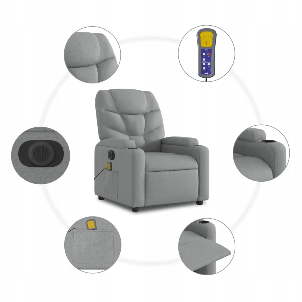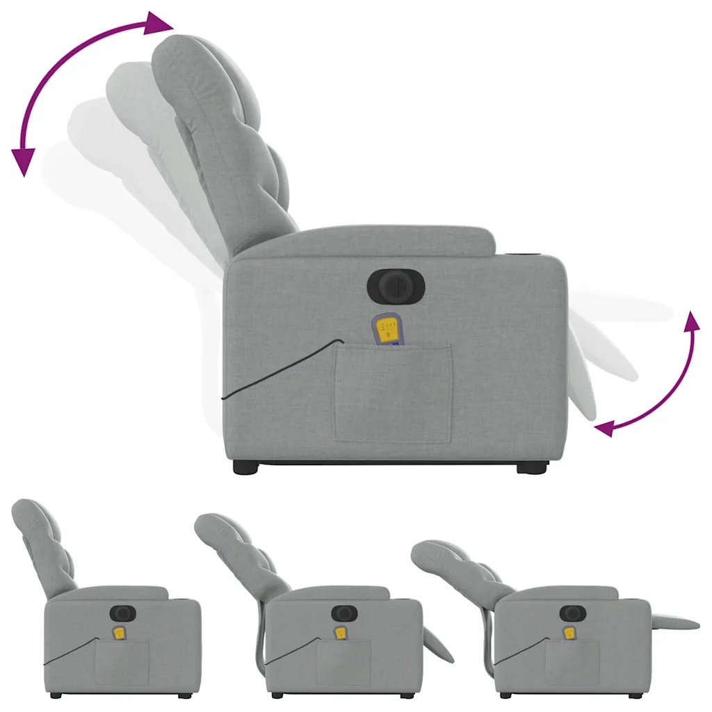 Подъемное массажное кресло vidaXL, электрическое, наклонное, светло-серое