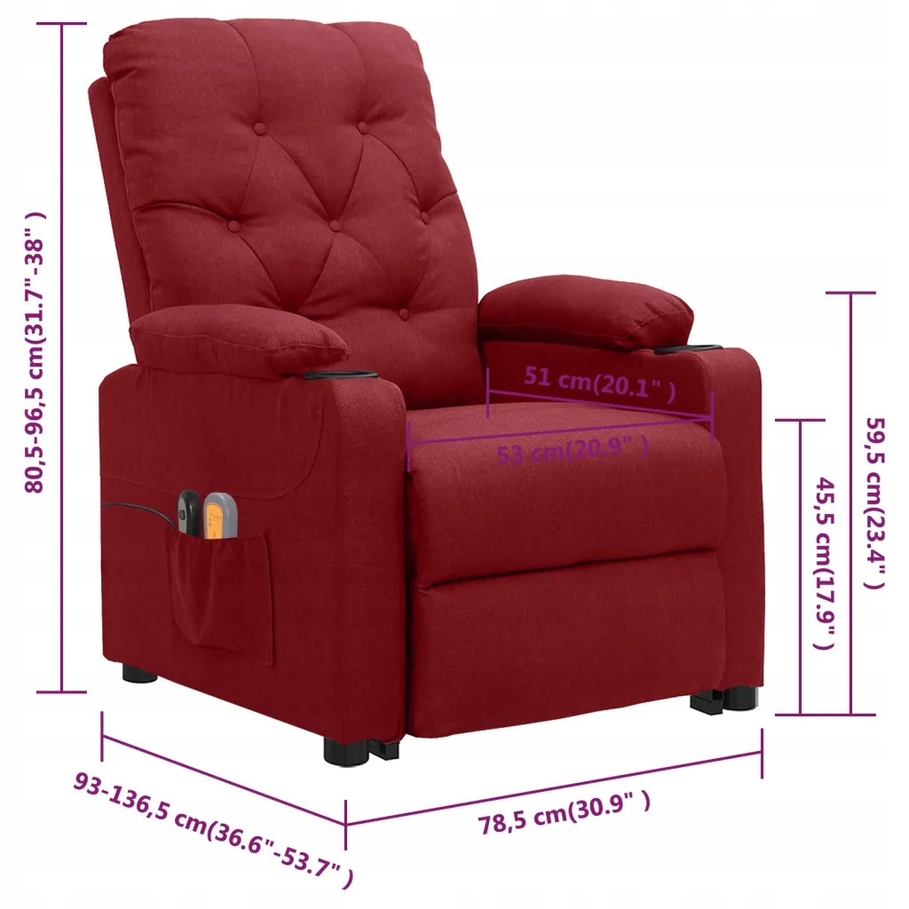 Vidaxl снятый массажный стул, виновный красный, ткань