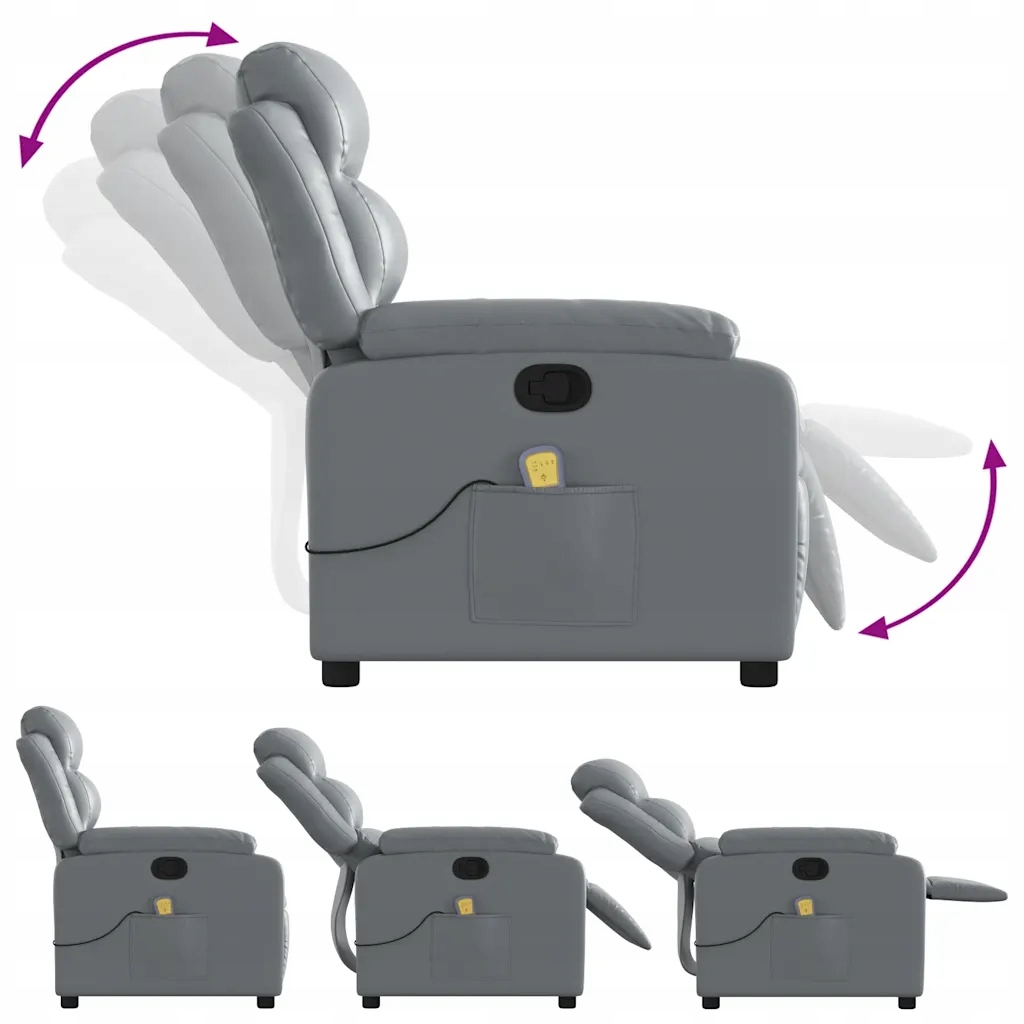 Vidaxl Fold -out Massaging Agchair, серое, покрытое искусственной кожей
