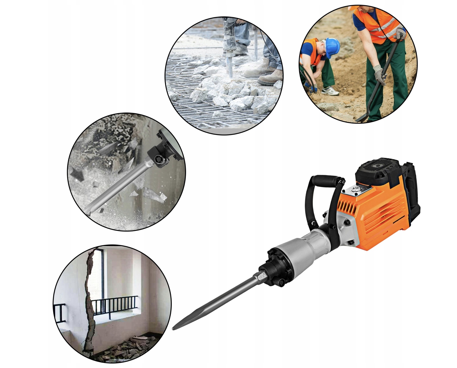 Пневматический молот является идеальным инструментом для сноса, земляных работ, дробления, сверления бетона, блоков, кирпича, цементации и т. д. Он подходит для сантехнических, механических работ, строительства систем водоснабжения и водоотведения, внутренней отделки, строительства. портовых сооружений и других строительных объектов.