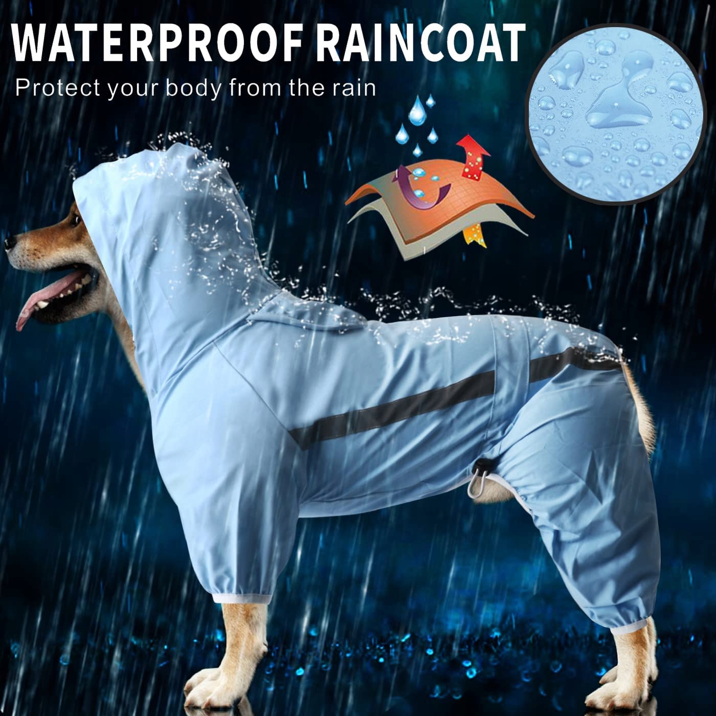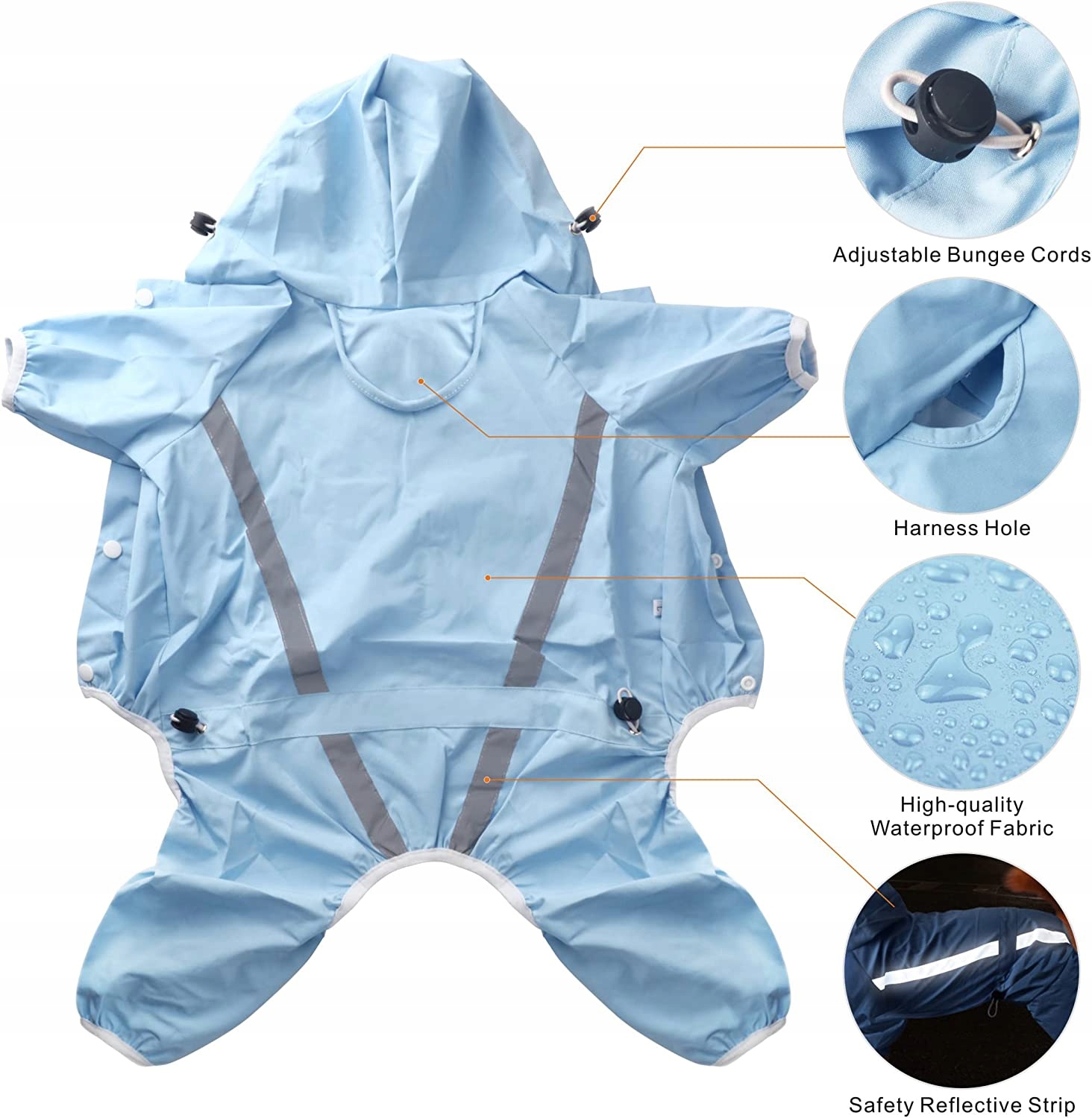 - 【Защитный отражатель и отверстие для тяги】На шее легкого плаща для собак имеется отверстие для тяги, которое позволяет комфортно вести вашего питомца под дождем. Светоотражающая полоса на спине улучшает видимость, помогает легко найти питомца и обеспечивает его безопасность в темноте.