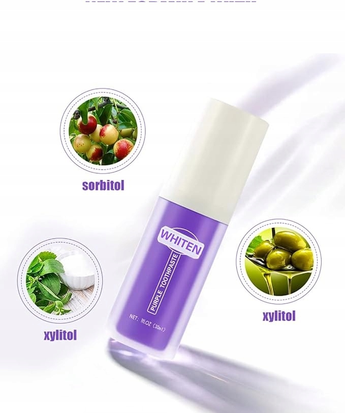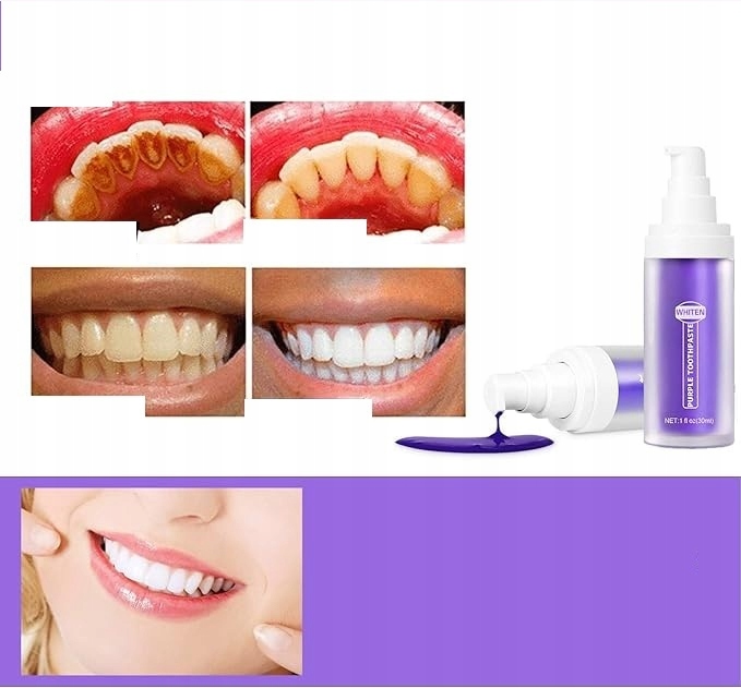 - Отбеливающая зубная паста может естественным образом и осторожно отбеливать и удалять пятна от зубов, подходящих для нормальных и чувствительных зубов. Это хороший выбор для неприятного дыхания. Нанесение фиолетового на зубы нейтрализует желтые оттенки и сделает ваши зубы белее. Рекомендуется использовать его в течение длительного времени, и вы можете увидеть очевидные результаты
