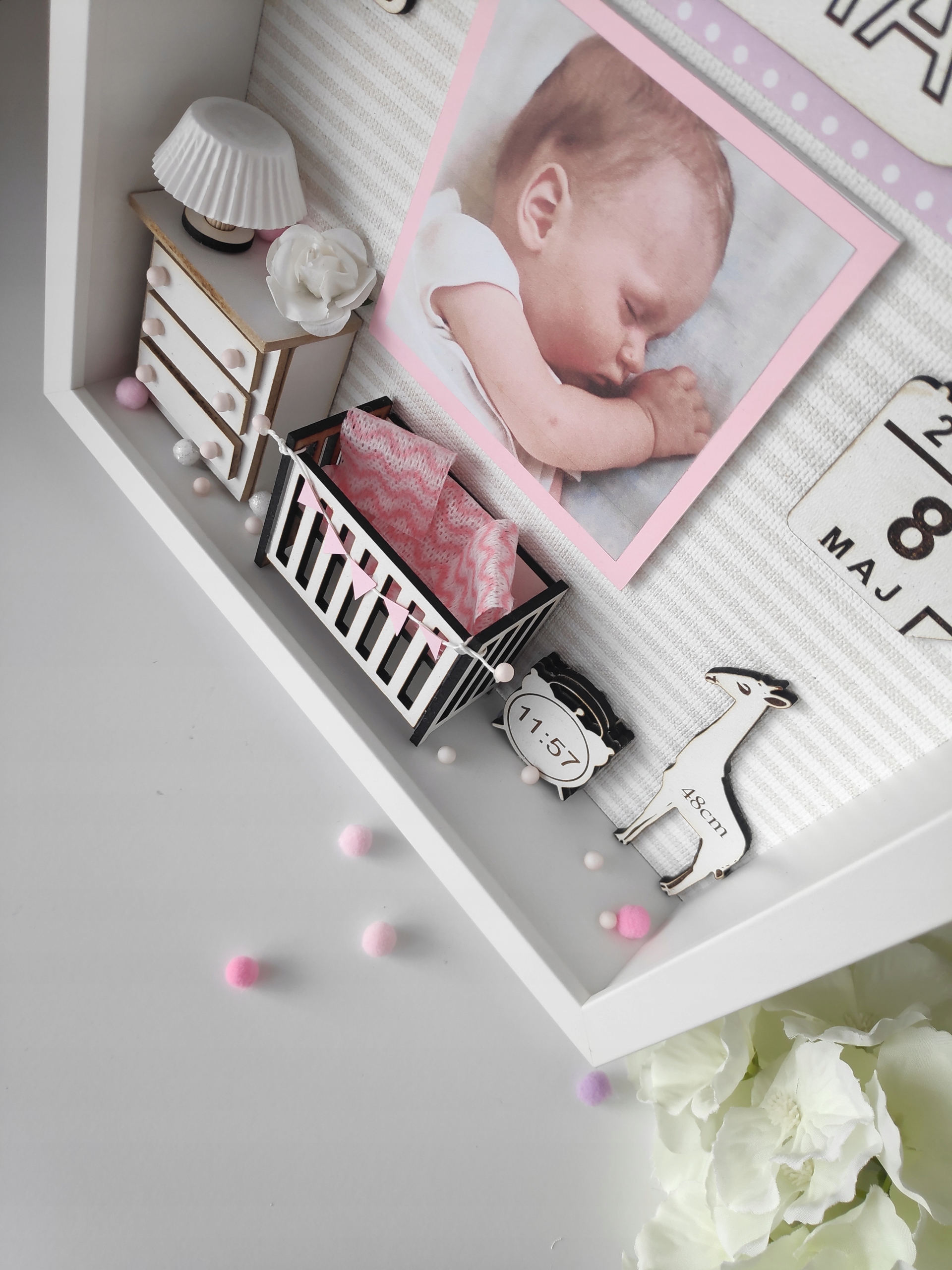 Рамку можно поставить на предмет мебели (есть своя ножка) или повесить на стену. Используемые цвета: розовый для девочки и синий для мальчика. По запросу мы можем изменить цвета в соответствии с присланными рекомендациями.