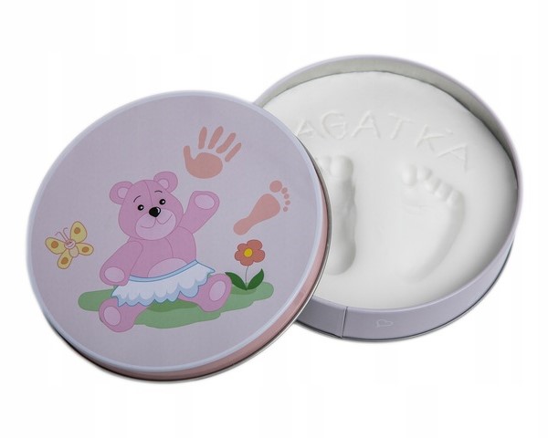 Набор состоит из декоративной банки, внутри которой находится удобная в использовании масса. Он приготовлен таким образом, что вы можете легко и быстро подготовить его к использованию самостоятельно. Произвести впечатление очень просто и не оставляет беспорядка. Дополнительно внизу крышки имеется этикетка с местом для ввода имени ребенка, возраста и даты изготовления отпечатка. К каждому набору прилагается подробная инструкция, поэтому изготовление оттискного материала не составит проблем. Изготовление сувенирного отпечатка ручки или ножки вашего малыша наверняка станет отличным развлечением для всей семьи. Наш «Детский отпечаток» — это идея для отличного развлечения. Все это очень красиво упаковано в красочную коробку, что делает наш продукт идеальным подарком для любого малыша.