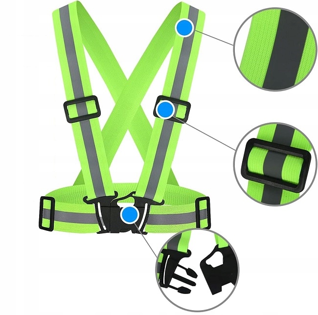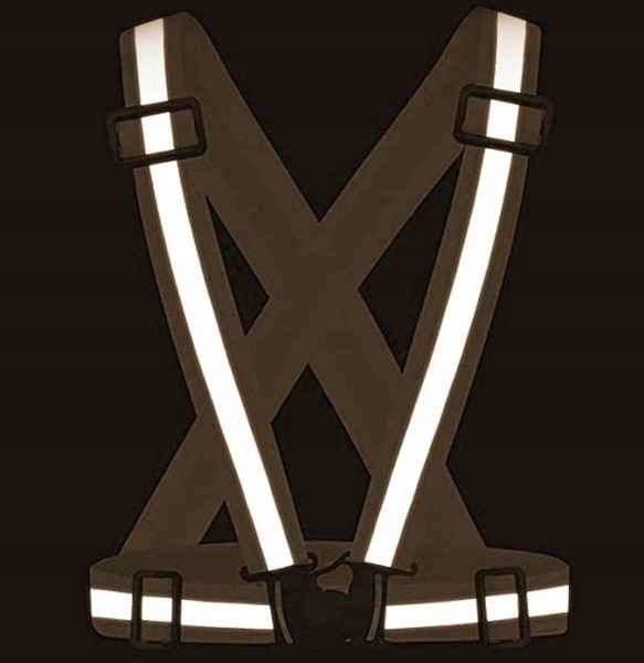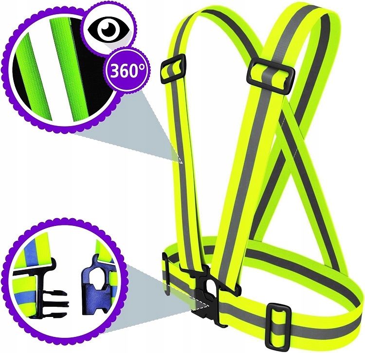 - Светоотражающий экранирующий жилет, который носят на вашей груди, идеально улучшается (даже несколько раз) вашу видимость на дороге после сумерки и, следовательно, вашей безопасности. Брекеты будут идеальными для бег трусцой, езды на велосипеде или мотоцикла или во время работы в сумерках, где хорошая видимость может решить вашу безопасность.