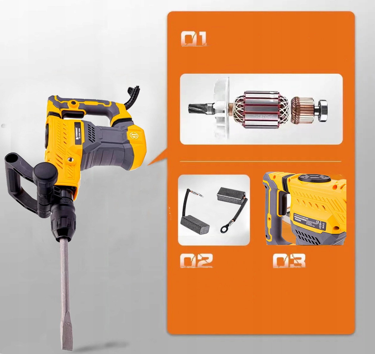✴️ Высокая мощность нашего устройства и его прочность Конструкция делает молот надежным и чрезвычайно эффективным. Молот оснащен дополнительной рукояткой, расположенной близко к центру устройства, что обеспечивает удобство маневрирования и точную работу молотком в диапазоне 360 градусов.