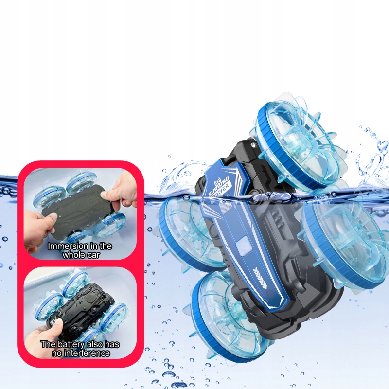 RC Amphibian автомобиль можно ездить после земли или серфинга на воде! Не только весь автомобильный корпус амфибий RC, но и улучшенный пульт ручной работы ручной работы и дистанционное управление, чтобы автомобиль и пульт дистанционного управления могут быть полностью погружены в воду и обычно развлекаются. Автомобиль RC может делать всю типичную акробатику автомобилей, и то, что они не могут, будь то на суше или в воде, может принести детям бесконечное веселье.