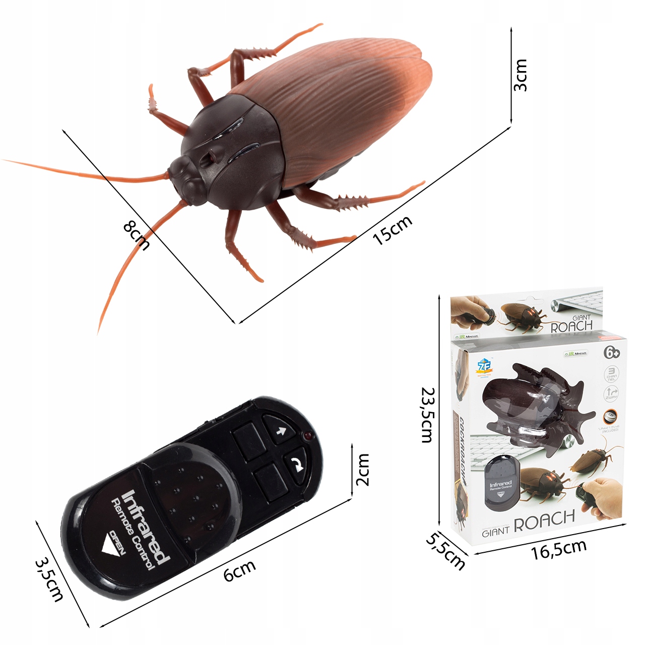 Благодаря пульту дистанционного управления таракана, вы можете легко маневрировать в разных направлениях. Игрушка движется вперед и назад и может вращаться на 360 °, что позволяет полный контроль над движениями червя. Пульт дистанционного управления позволяет легко скрыть и выпустить его в идеальный момент, чтобы достичь наилучшего эффекта удивления!