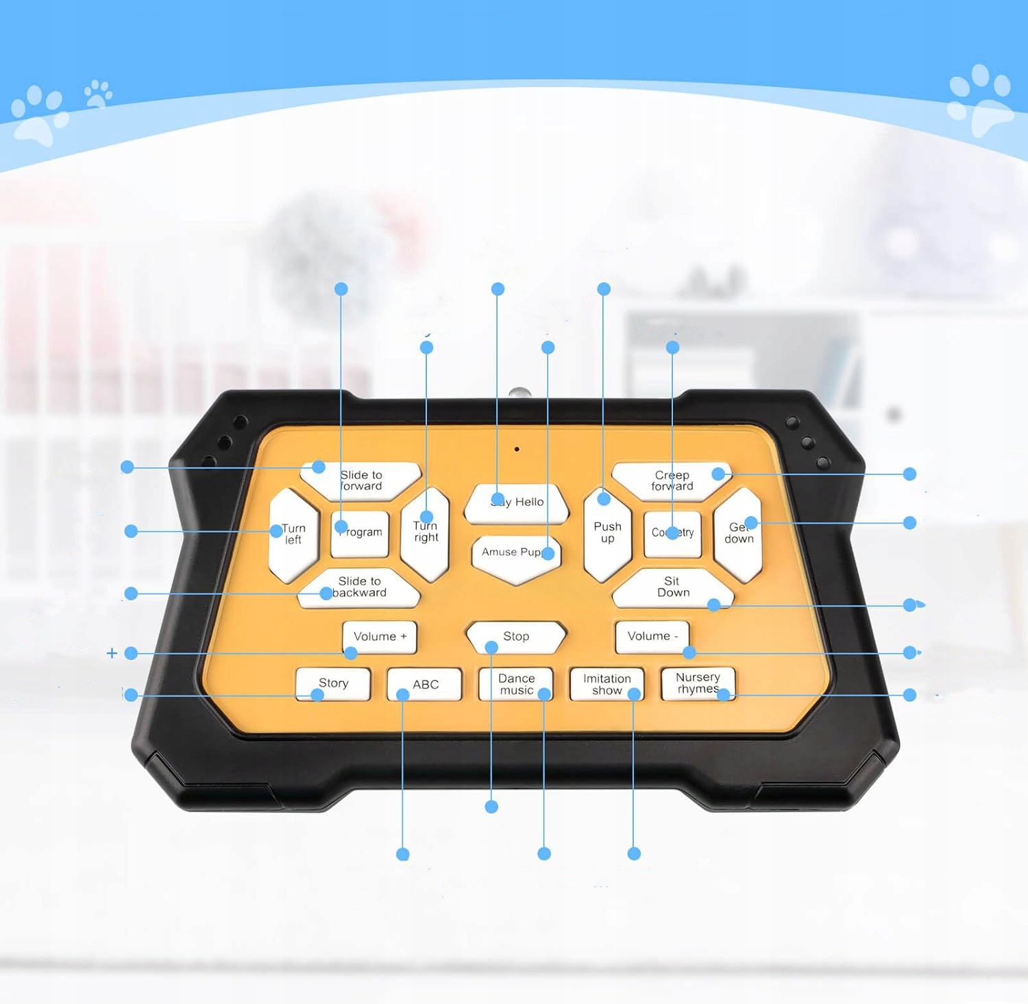 - Мы также добавили дополнительные функции, такие как сказать «привет», развлечение щенка и кнопку остановки, чтобы предоставить вам больше удовольствия и комфорта.
