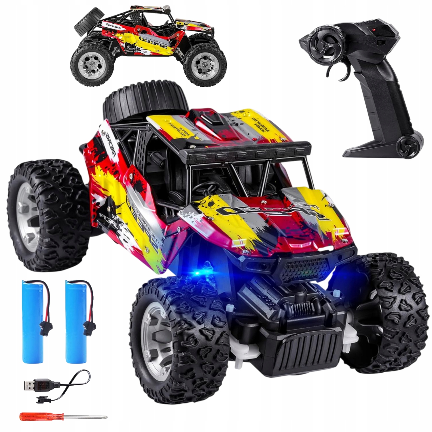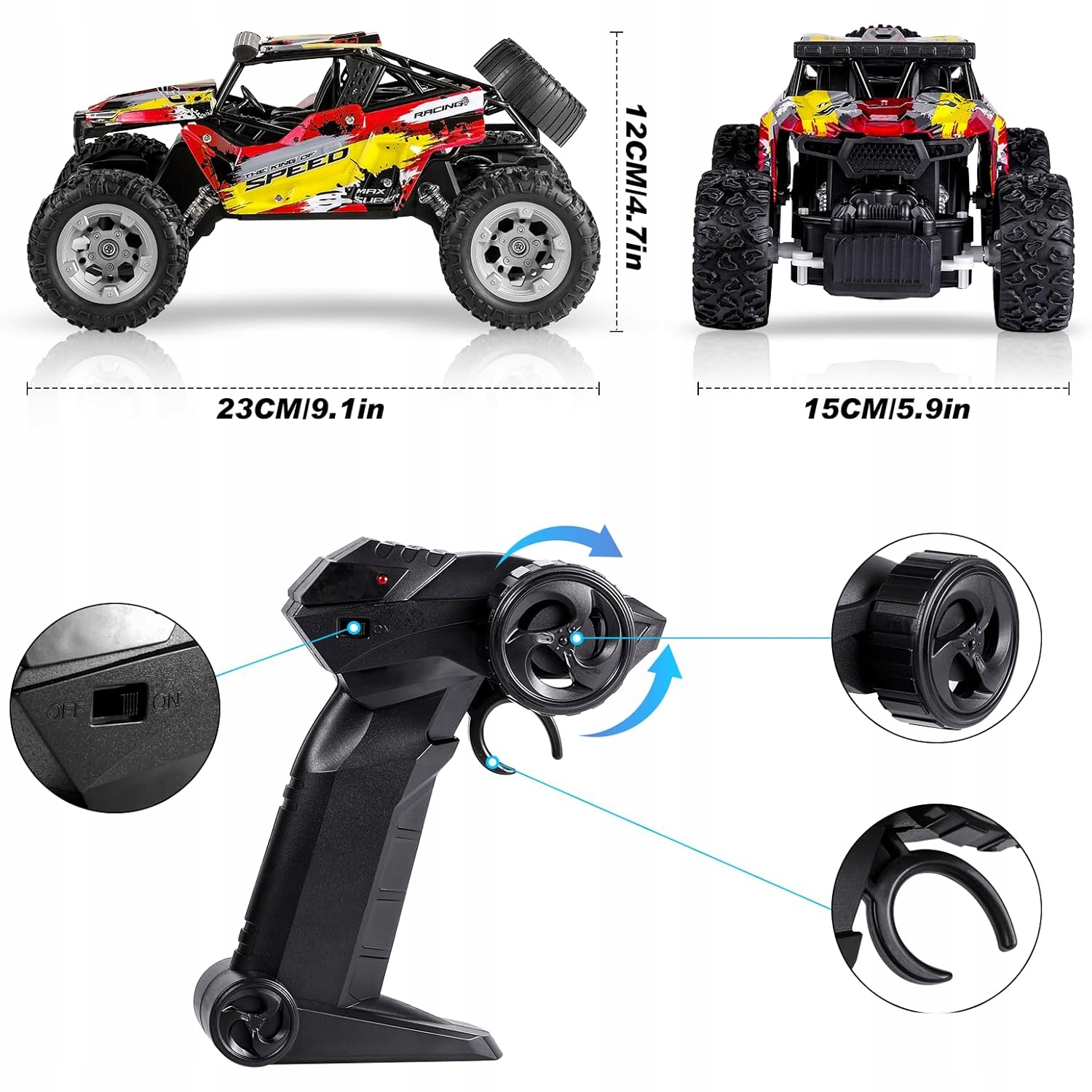 Если вы обнаружите, что дистанционно -контролируемый автомобиль наклоняется в сторону, вы можете вращать декоративную ручку в нижней части тела, пока автомобиль с дистанционным управлением не пойдет прямо. Полевые шины имеют хорошую сцепление и более долговечны, чем обычные шины. Функция амортизации может преодолеть любую область на песке, траве, почве, каменистых тропах или ухабистых дорогах -пристанившихся на дороге с красочными, легкими светодиодами может повысить удовольствие от вождения и обеспечить безопасность ночью.
