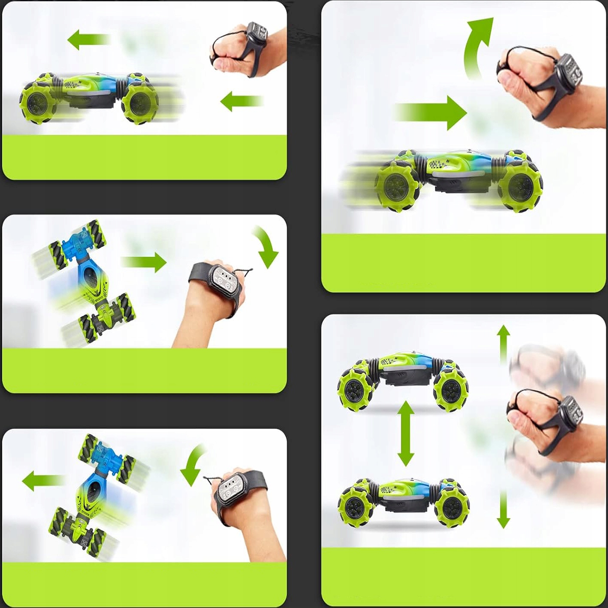 - CAR с дистанционным управлением с дистанционным управлением поля имеет три типа дистанционного управления, обнаружение дистанционного управления с жестами, обнаружение запястья и 2,4 GH-дистанционное управление обеспечивает чувствительный и точный пилот. Вождение