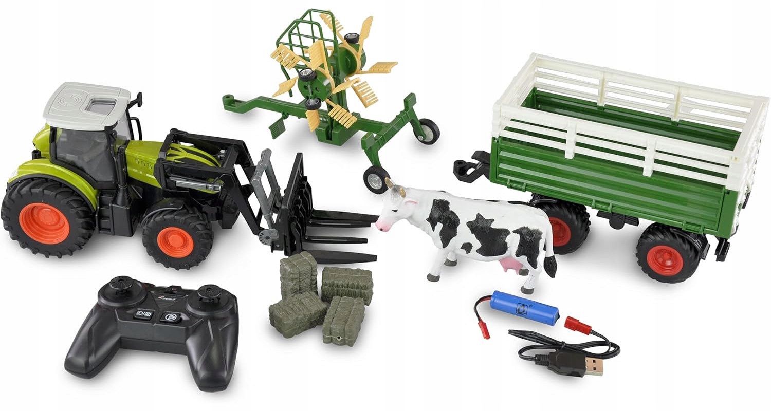 Подача в подаче Удаленный -контролируемый трактор с дополнительным сельскохозяйственным оборудованием удовлетворит все требования небольшого хозяина и передаст его в сельскохозяйственный мир. Воображение ребенка расскажет ему различные сценарии веселья.