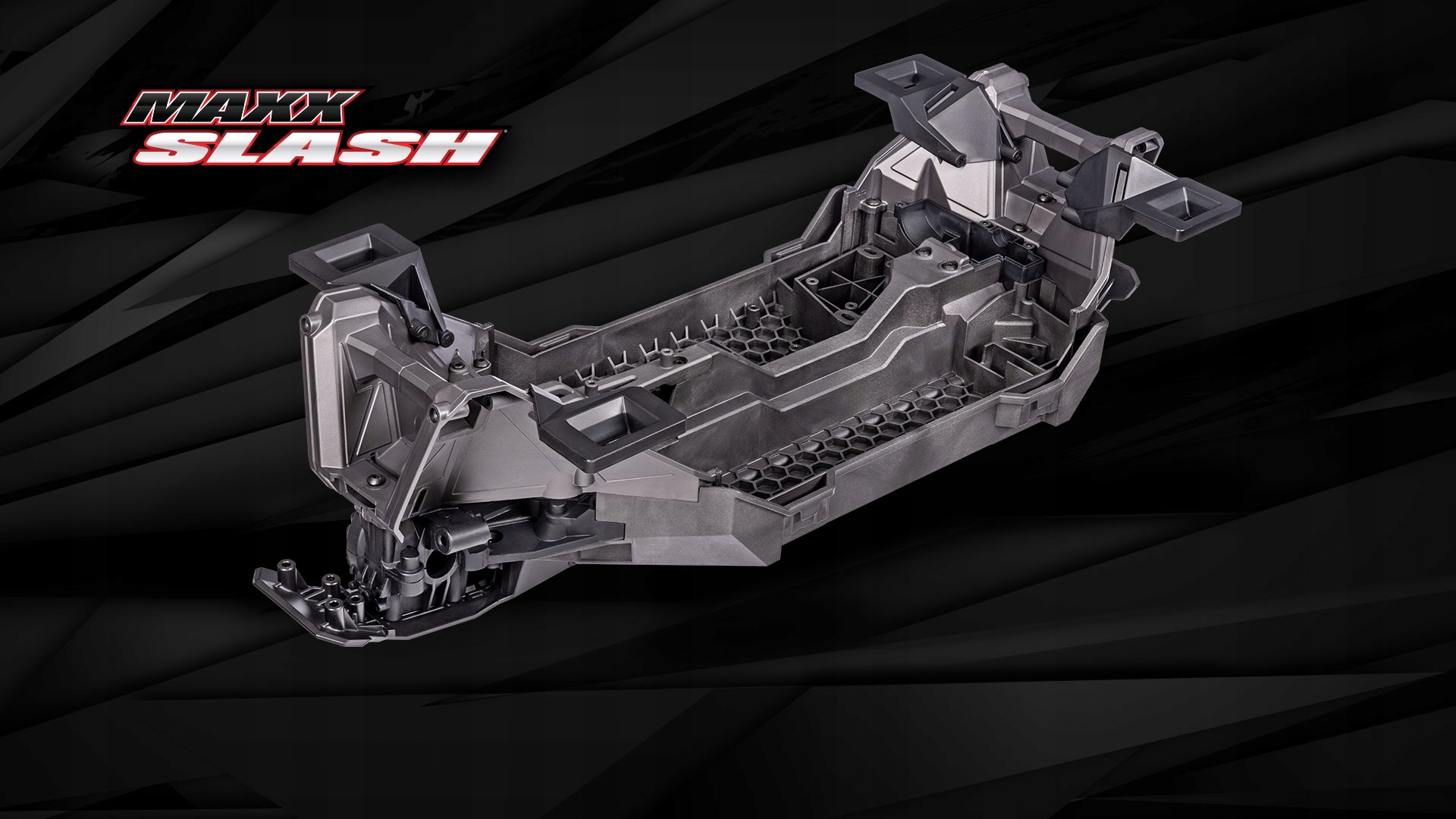 Инженеры Traxxas состояли в годы испытаний, цепляясь за почти неразрушимый MAXX в качестве вдохновения для революционной конструкции шасси Maxx Slash. Укрепление покрывает почти каждую плоскую поверхность шасси, обеспечивая исключительную жесткость. Чрезвычайно прочная композитная конструкция из перекрывающихся элементов позволяет шасси поглощать огромные удары, сохраняя при этом низкий центр тяжести.