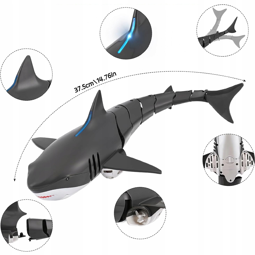 - 🦈 Бионическая структура хвостового сустава: благодаря бионической структуре пруда, хвост может свободно плавать и достигать различных путей движения в воде. Благодаря этому акула движется гладко и реалистично.