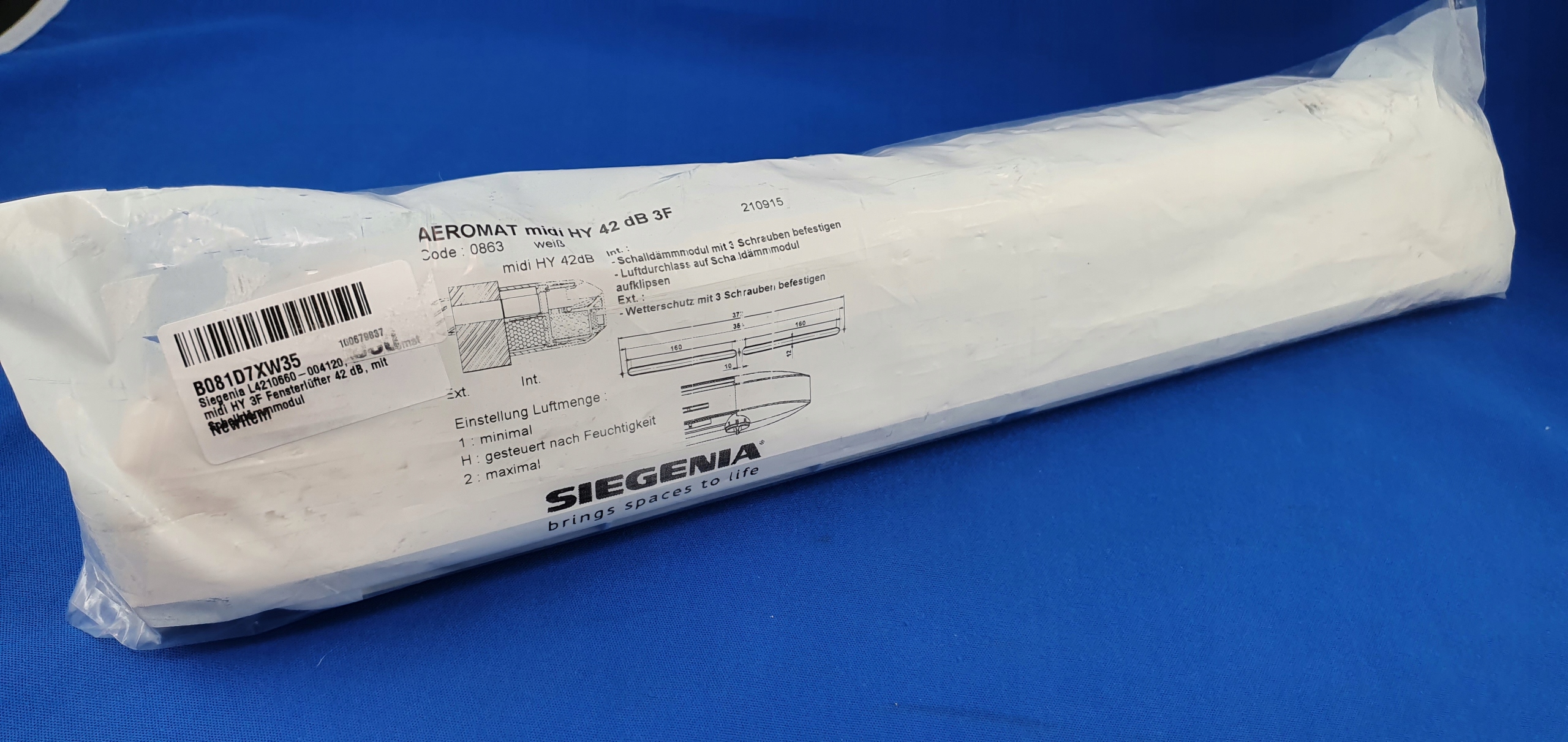 Пассивный оконный вентилятор AEROMAT midi HY использует естественную разницу давления для минимальной вентиляции, адаптированной к вашим потребностям, и регулирует ее в зависимости от влажности. Открытие приточного воздуха контролируется по относительной влажности с помощью многослойных тканевых лент, которые чутко реагируют на изменения и расширяются или сжимаются. Это обеспечивает индивидуальный контроль влажности в помещении в соответствии с DIN 1946-6.