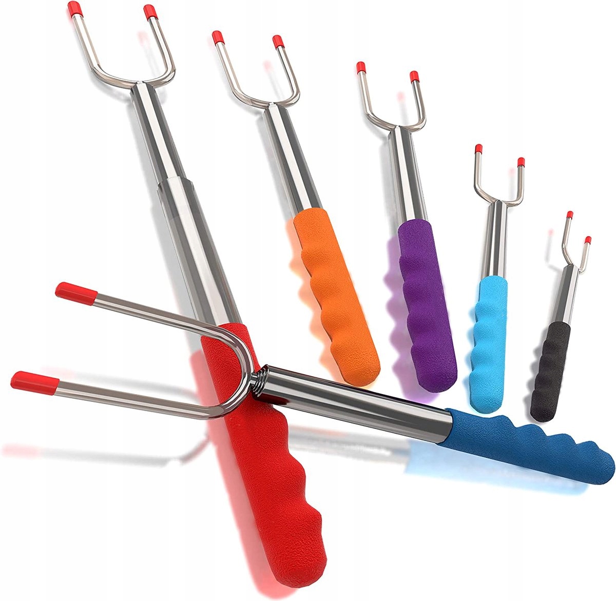 Телескопические запекающие палочки BOTC - шашлыки для барбекю из нержавеющей стали с резистентными ручками тепла | Безопасно для детей и приготовление пищи от огня