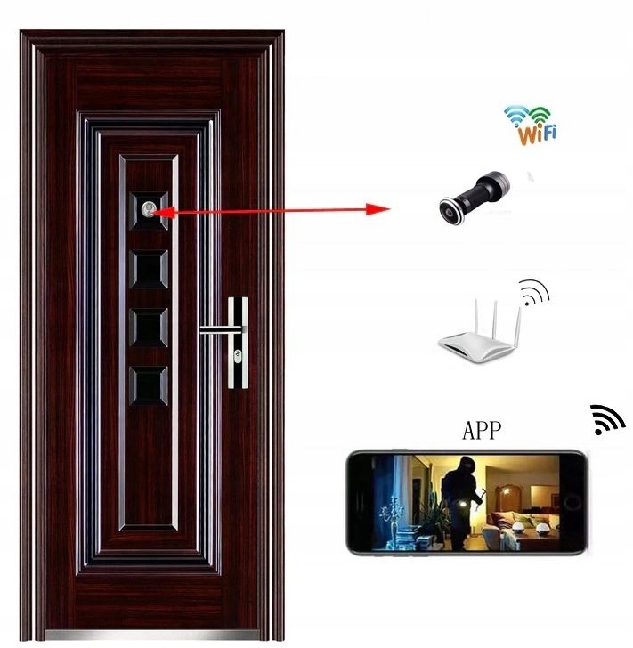 Micro Camera Full HD с подключением WiFi в дверном видоискателе и -в -в -рекордере .. камера напоминает традиционный видоискатель - даже с очень близким невозможно узнать, что это камера - вы не видите линза, что происходит перед дверью. Это также позволяет сохранить карту памяти до 128 ГБ .