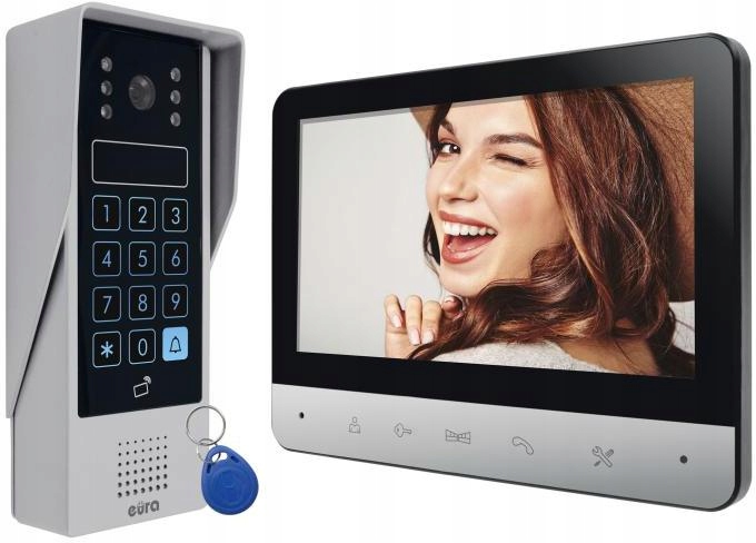 - Войти на территорию объекта можно, введя правильный код на сенсорной клавиатуре или используя бесконтактный считыватель, поддерживающий брелоки и карты . В комплекте - вместе с видеодомофоном EURA VDP-77A3 - вы получите 7 таких брелоков!