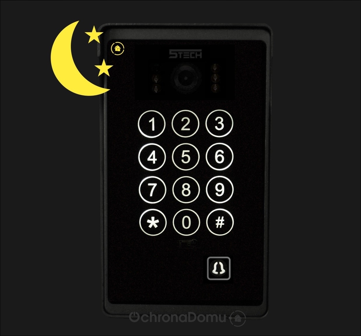 Во время разговора в ночное время устройство активирует светодиоды, освещающие звонящего (по обе стороны линзы). Благодаря этому мы гарантируем хорошую видимость даже в полной темноте!