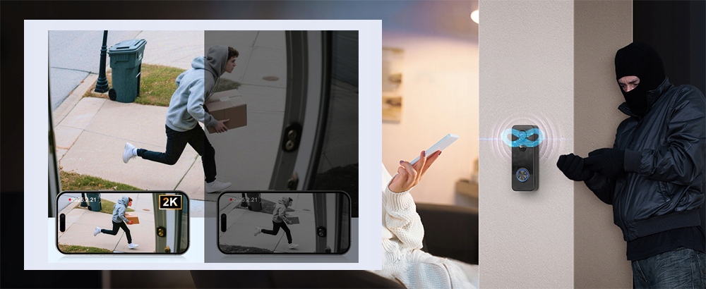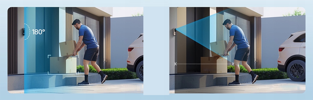 • Умный дверной звонок обеспечивает панорамный вид 1:1,устраняет слепые зоны и обеспечивает непревзойденную безопасность.