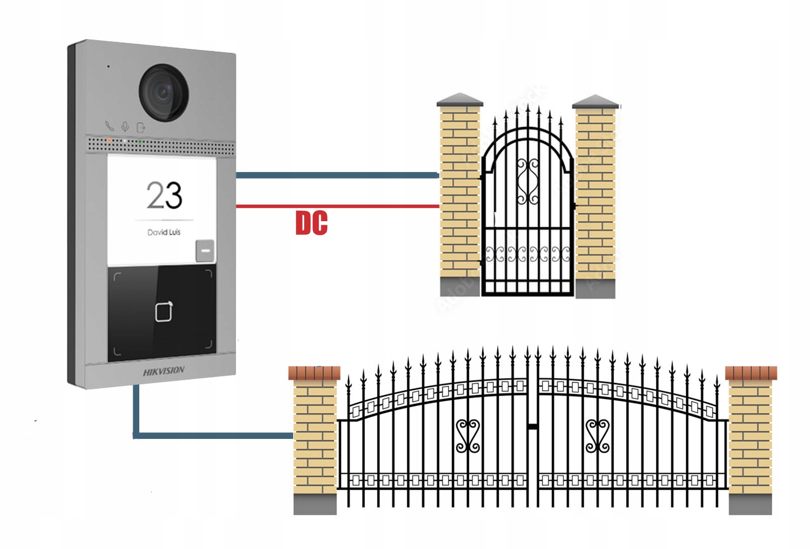 Благодаря двум независимым реле, установленным в воротах HikVision DS-KV8113-WME1у нас есть такая возможность b>для управления двумя входами (калиткой и воротами) - опция также доступна из приложения Hikconnect на телефоне.
