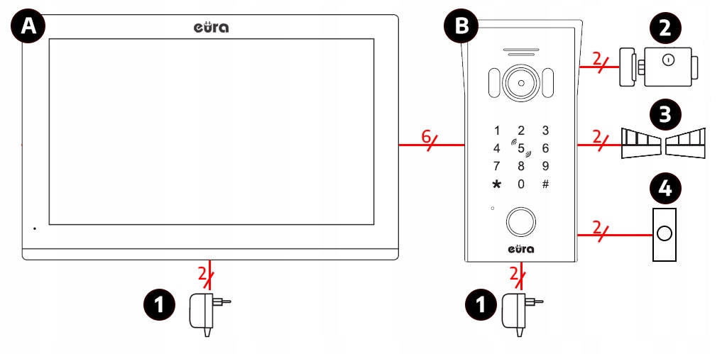 Видеомофон можно расширить до 6 мониторов, 2 шлюзов и 2 камер видеонаблюдения
