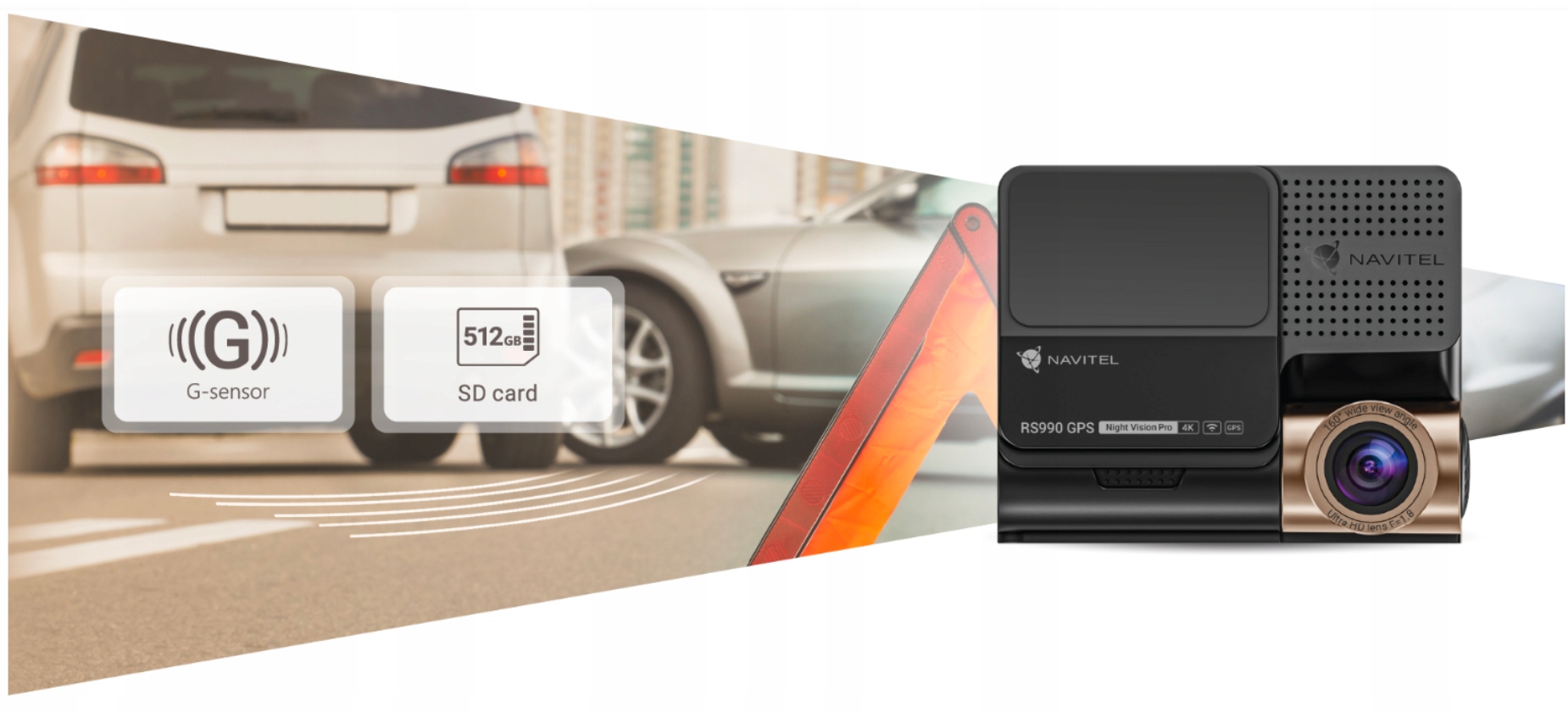 Благодаря встроенному G-Sensor, GPS RS990 обнаруживает шоки и автоматически начинает запись. Даже если ваш автомобиль припаркован, устройство наблюдает и записывает каждое тревожное событие. В сочетании с Navitel Smart Box Max вы можете насладиться 24 -часовым мониторингом!