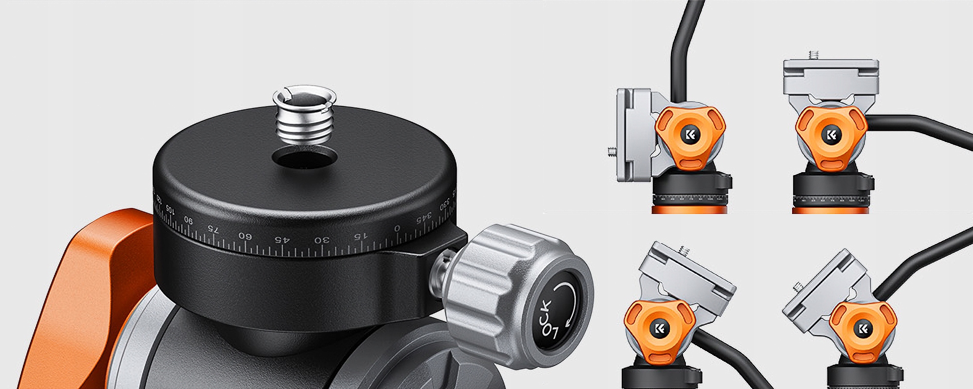 В комплект насадки K&F Concept FH-03 входит эргономичная ручка, которую можно настроить под свои предпочтения. Рукоятка позволяет менять угол и направление захвата. Это сделает движения фотоаппарата или видеокамеры не только более удобными, но и более точными. Ручку также можно легко снять, что повышает универсальность насадки в различных ситуациях.