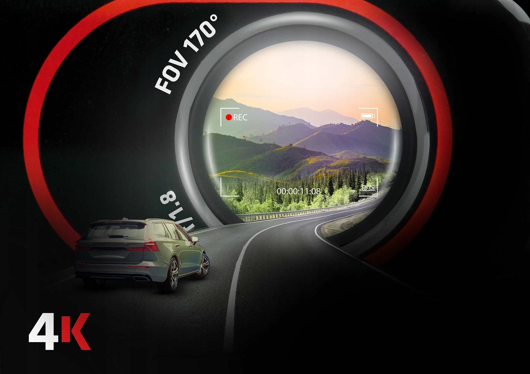 Разрешение 4K обеспечивает отличные параметры записи видео независимо от условий вождения. Комфортная и точная запись дороги возможна также благодаря объективу камеры, имеющему угол обзора 170°. Благодаря этому вы будете фиксировать как полосы дороги, так и обочину, что даст вам полную картину коллизионной ситуации в случае ДТП. Это отличное доказательство при вынесении решения о виновности.