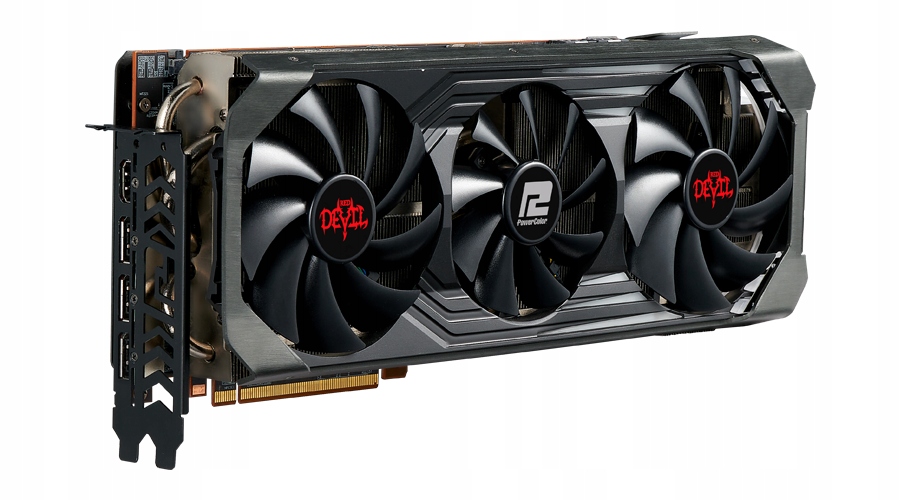 Благодаря двум 100-мм и одному 90-мм вентиляторам PowerColor Radeon RX 6900 XT Red Devil охлаждается с высочайшей эффективностью. 320-мм радиатор с семью тепловыми трубками и большой медной контактной пластиной эффективно получает тепловую энергию от графического процессора, гарантируя наилучшие условия работы. Вентиляторы основаны на двойных шарикоподшипниках, благодаря чему работают тихо и надежно. Все это дополнено металлической задней панелью, которая еще больше улучшает свойства пассивного рассеивания тепла.