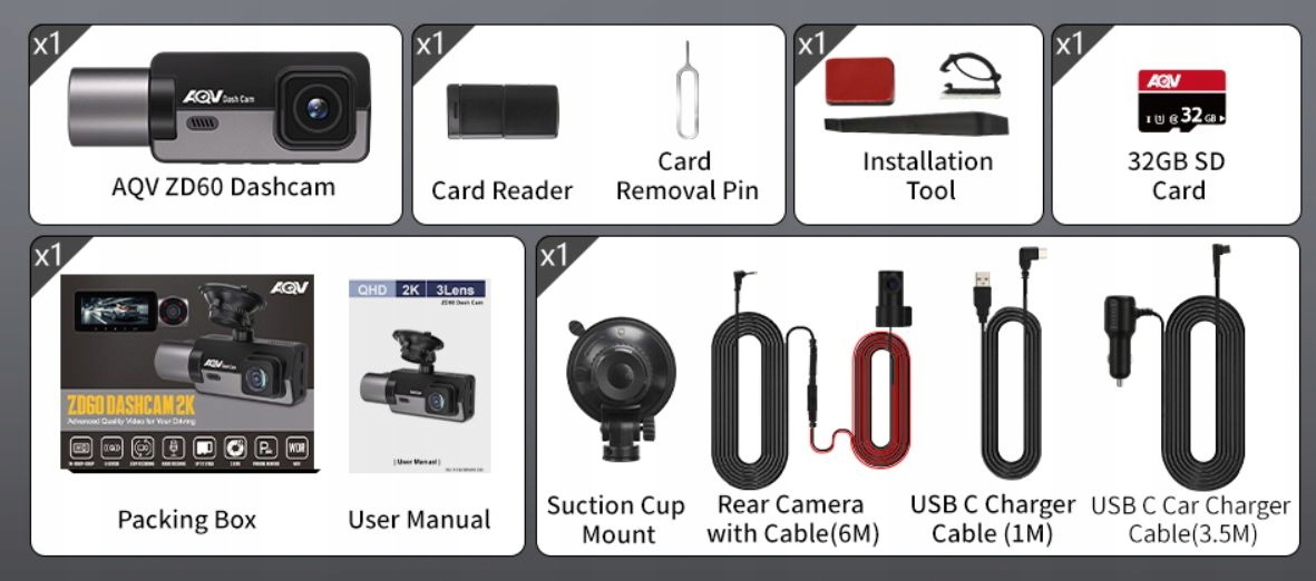 aqv dash aqv камера для задней и внутренней дороги 2K 1440p+1080p+1080p. Кроме того, есть задняя камера 1080p и внутренняя камера 1080p, обеспечивающая полную крышку. Благодаря этим трем широкоугольным объективам вы можете без усилий запечатлеть сложные детали движения спереди, интерьера и сзади. Следите за всем этим на 3,16 -INCH DISPLE, чтобы получить реальную видимость.