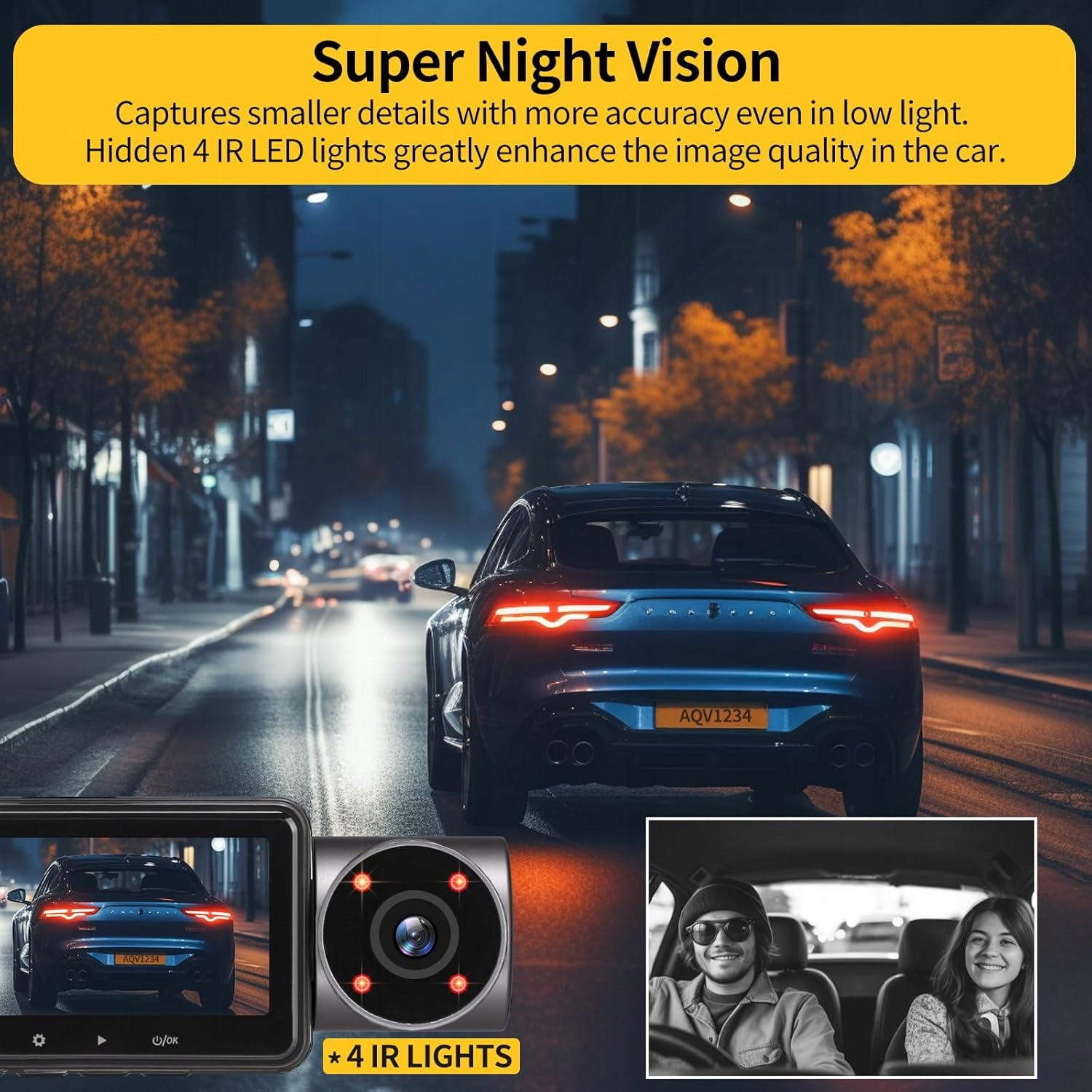 Наша автомобильная камера выделяется, чтобы запечатлеть меньшие детали, даже в условиях плохого освещения. Внутренняя камера использует 4 ИК -лампы, обеспечивая автомобильную камеру с исключительным качеством изображения в течение ночи или сценариев. Благодаря записи технологии 2K и WDR, автомобильная камера верно записывает все живые детали, включая номерные знаки и дорожные знаки, даже в темноте.