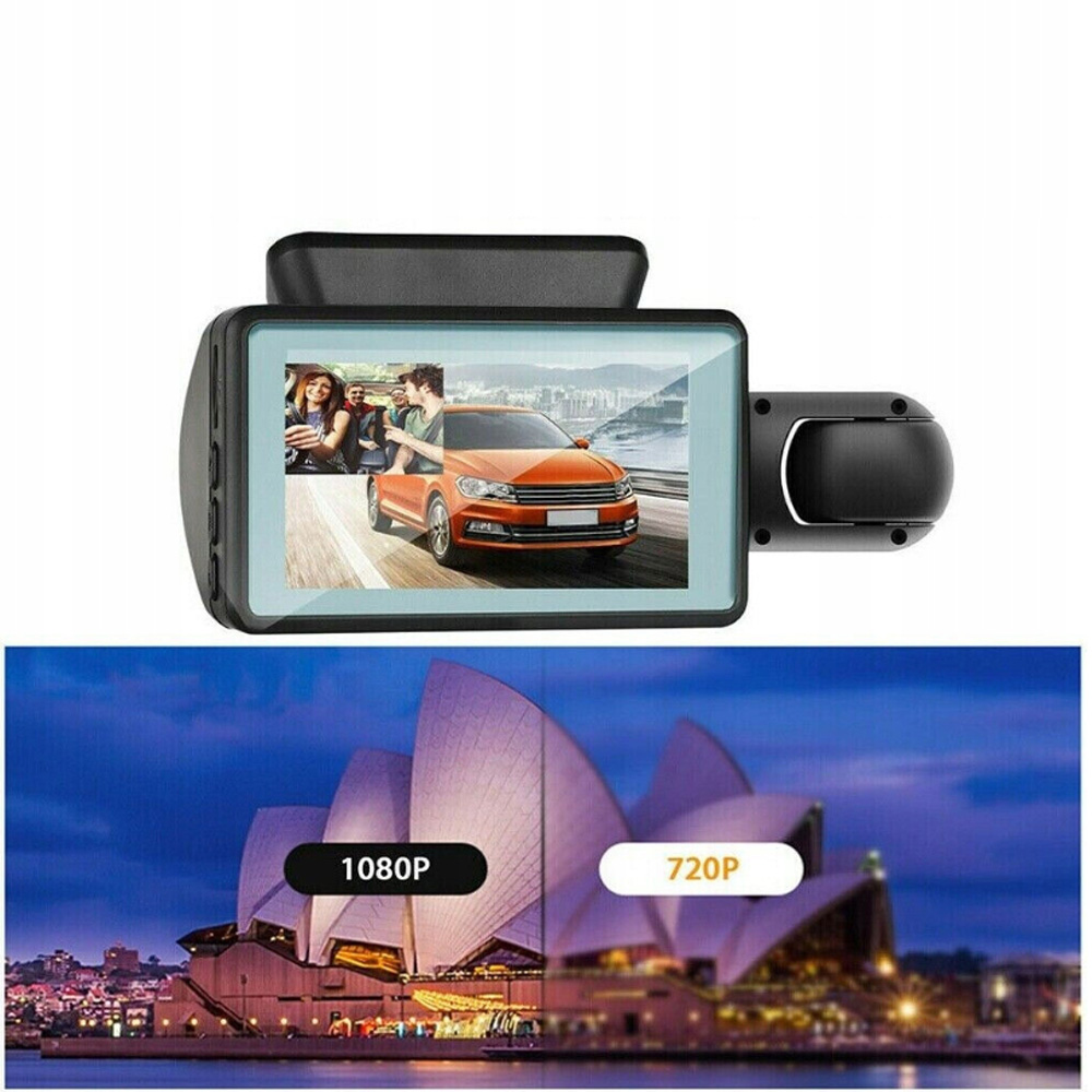 благодаря 3-дюймовому ЖК-экрану. Автомобильная камера с двойной линзой записи 1080x720p с 25 кадрами в секунду, которая обеспечивает острые, высококачественные фильмы / фотографии и убедительные доказательства в случае аварии.