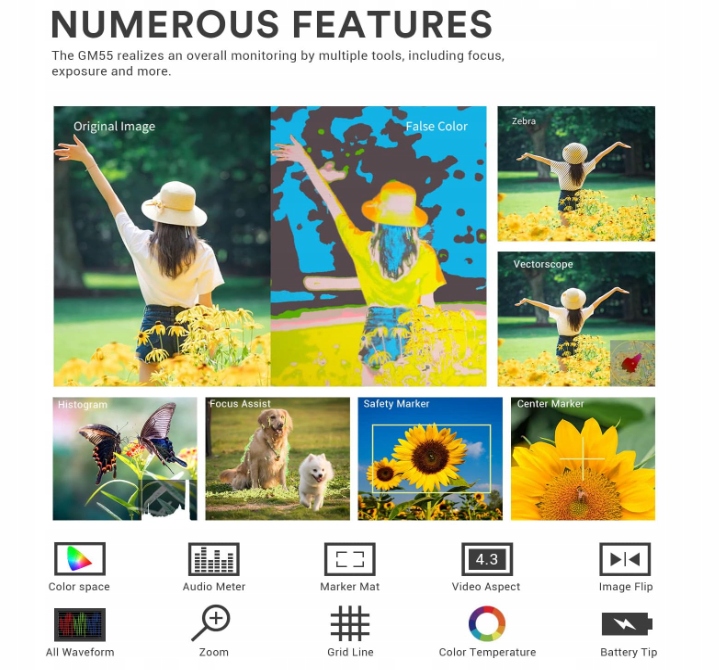 Функция управления камерой — GM55 может управлять камерой через контекстное меню или комбинацию клавиш. GM55 обеспечивает полный мониторинг с помощью множества инструментов, включая фокусировку, экспозицию и многое другое.
