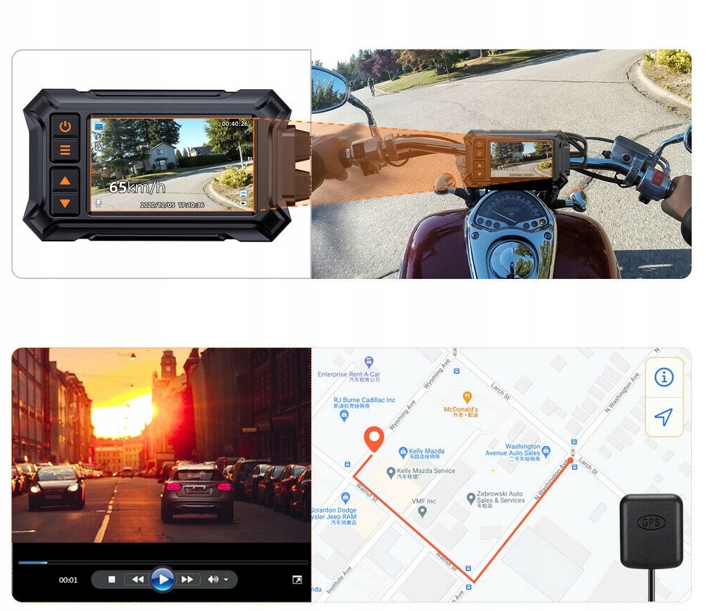 ВИДЕОЗАПИСЫВАТЕЛЬ ДЛЯ МОТОЦИКЛА A12 2 КАМЕРЫ FULL HD 1080p 3″ ПУЛЬТ ДИСТАНЦИОННОГО УПРАВЛЕНИЯ WiFi GPS