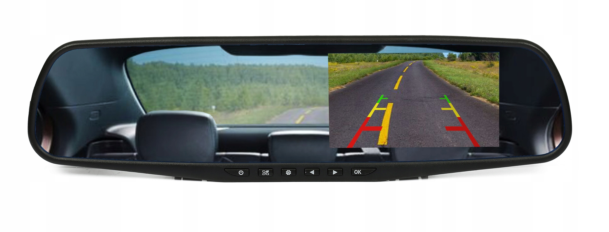 - Маршрутизатор в зеркале. со встроенным 4,3-дюймовым TFT ЖК-экраном и AV-входом.