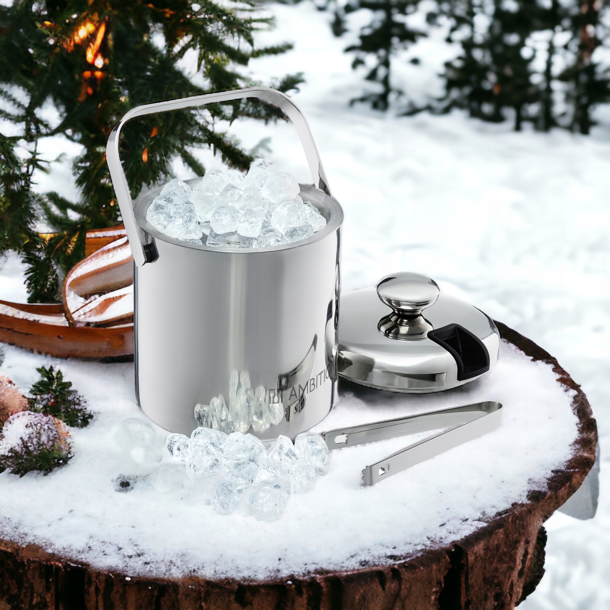 ВЕДРО ДЛЯ ЛЬДА С КРЫШКОЙ И ЩИПЦАМИ-ХОЛОДИЛЬНИКАМИ ИЗ НЕРЖАВЕЮЩЕЙ СТАЛИ AMBITION
