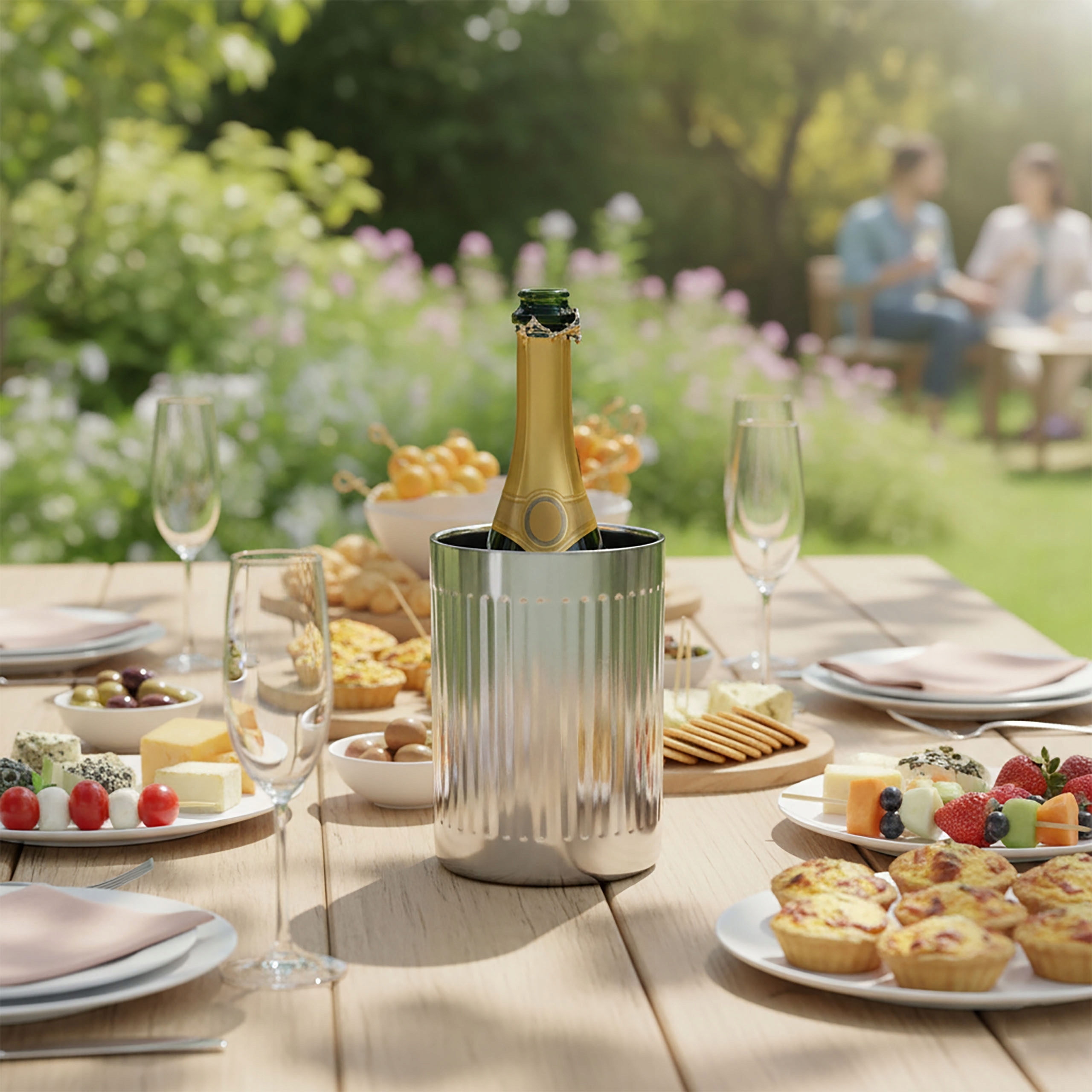 Ведро имеет двойные изоляционные стенки, что сводит к минимуму теплообмен с окружающей средой. Благодаря этому лед тает медленнее, а вино или шампанское сохраняет оптимальную низкую температуру на протяжении всей вечеринки.