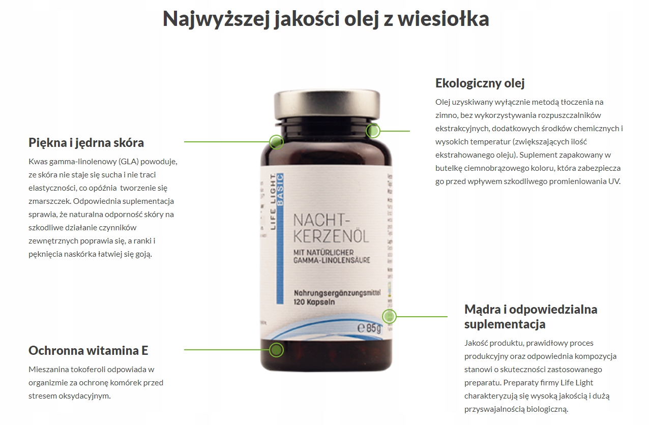 - Масло семян примулы вечерней высочайшего качества (Oenothera biennis L.) получают исключительно методом холодного отжима, без использования экстракционных растворителей, дополнительных химикатов и высоких температур ( увеличение количества добываемой нефти). Помимо октадека-9,12-диеновой кислоты (линолевой кислоты), это масло содержит более 9% ценной полиненасыщенной гамма-линоленовой кислоты.