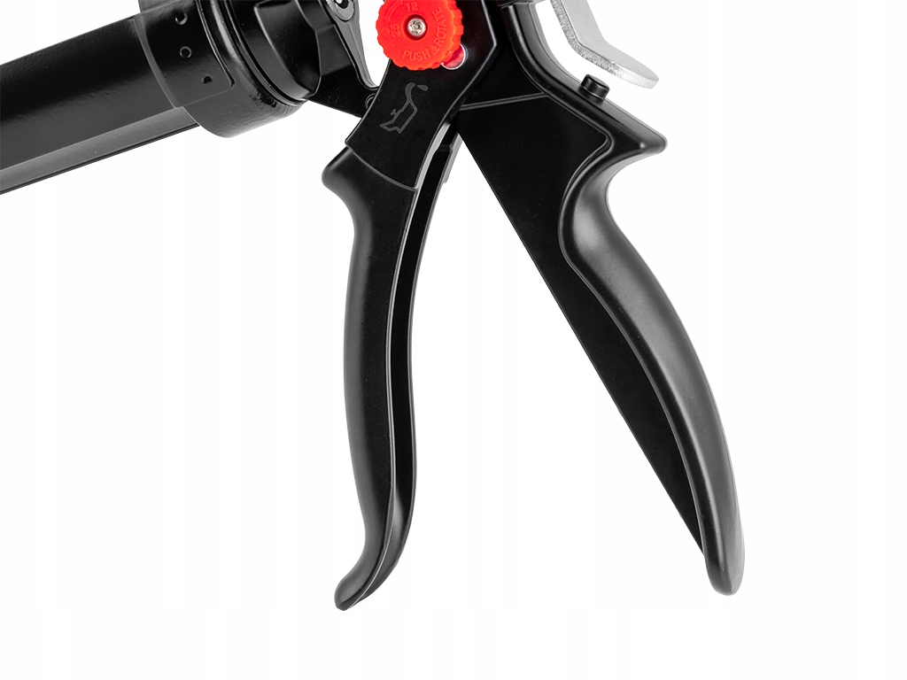 Ручной отжиматель для выдавливания клеев и герметиков в упаковке картриджного типа максимальной вместимостью 310 мл изготовлен из пластика и алюминия.