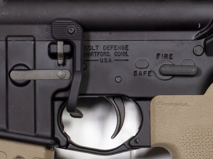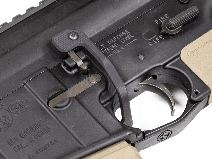Тонкий профиль, предотвращающий защемление, и текстурированная поверхность по-прежнему позволяют выполнять традиционные манипуляции с защелкой, сохраняя при этом беспрепятственный доступ к спусковому крючку